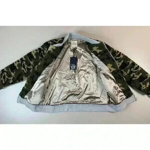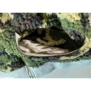 Chaser Womens Camo Teddy Bear Bomber Jacket NWT Small Satin Lined Neutral Zip Up