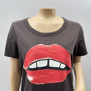 Chaser Womens Graphic Tee Lips Mouth Gray Red With Open Back Design Size M, NWOT