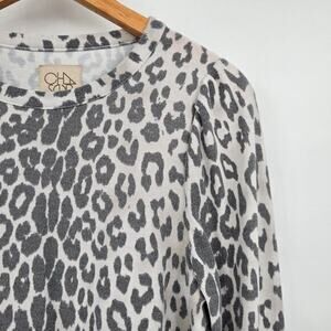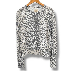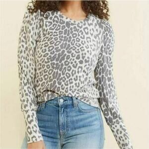 Chaser Women's Leopard Cheetah Animal Print Round Neck Puff Sleeve Sweater XS