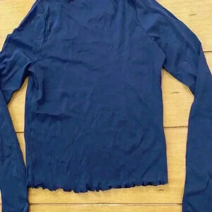 New w tags, Chaser blue long sleeve t-shirt in a small. The material is on the thinner side with slight ruffling at the collar, wrists and bottom. Super cute!
