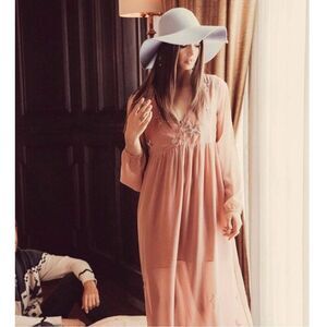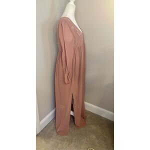 Keywords: Chaser, maxi dress, beaded, pink, party dress, cocktail dress, V-neck, long sleeves, star embellishments, women's fashion, evening wear, new with tags, elegant, stylish, split sleeves.