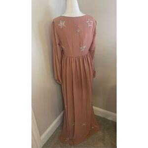 Chaser Women's S Pink Beaded Star Maxi Dress V-Neck Party Cocktail