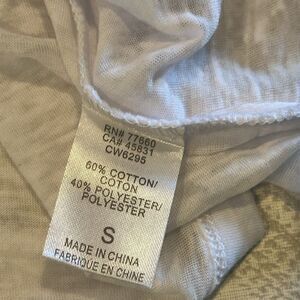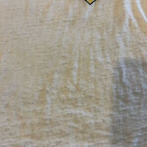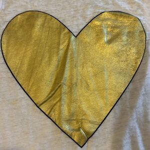 Chaser Women’s Sheer White Tank Top with Metallic Gold Heart. Some minor wear/piling under the arms. Creasing on the heart. 18” pit to pit and 24.5” shoulder to front hem. Size S.