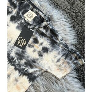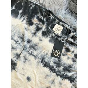 Chaser Women’s Tie Dye Tan & Black One Sided Cold Shoulder T Size Small