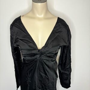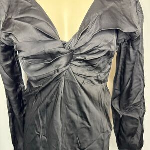 Chaser Women's Small Fit Flare Mini Dress Black Satin Twist Front Detail V Back