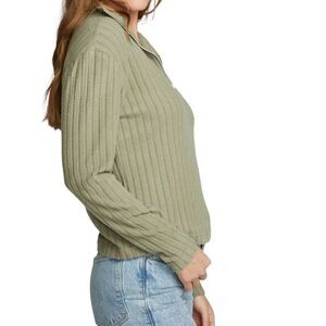 Chaser Zip Up Mock Neck Long Sleeve Pullover in Sage Size Small