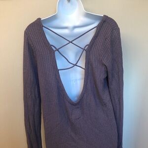 Chaser criss cross back waffle knit Long Sleeve top size M New With Tags