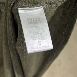 Chaser olive green dress rolled cap sleeves drawstring waist, pockets raw edge peep hole at neck. S