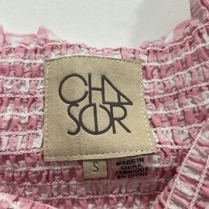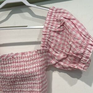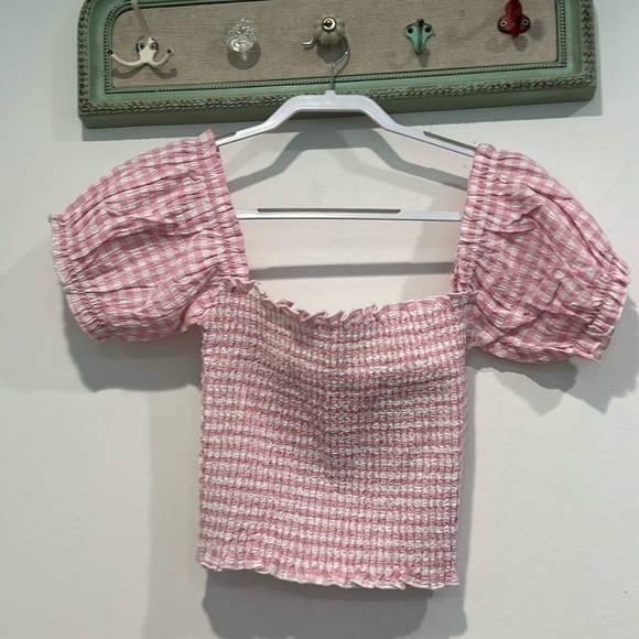 Chaser pink white gingham print puff statements sleeve smocked top small women’s