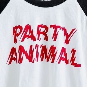 Vintage Party Animal red font on this black and white henley from the Chaser x MGM Resorts collab. New with tags!