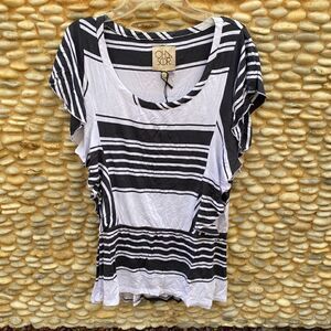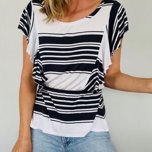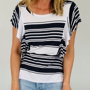 Chaser x Revolve White & Grey Striped Ruffle Flounce Sleeve Tee. Medium. New NWT