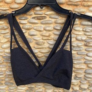 Chaser Heather Charcoal Gray Criss Cross Strappy Bralette Size Medium. Soft NWT