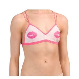 Chaser Verbiage Kisses bralette with lips an each boob and pink on pink mesh/lining