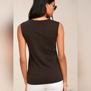 This sleeveless knit top has bold white text at front that reads "Vodka. Soda. & Lime." below a rounded neckline. Relaxed, wide-cut bodice