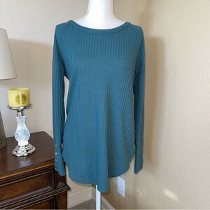 Chaser Waffle Knit Thermal Top Teal Green Size Medium Button Cuffs