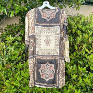 Chaser Women's Brown/Black/Cream Scarf Pattern Silk Like Sheath Dress. Small NWT