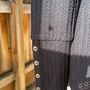 Chaser top Henley waffle long sleeve black solid Sz Small FIRM on PRICE