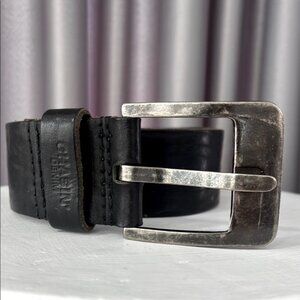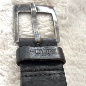 Well crafted from high quality leather by Chasin’ Denim. Men's Size 85. Naturally distressed, wide, offers an urban-lumber jack vibe, durable, never goes out of style. Smells of rich leather! Measures: 3" X 40". Has 5 hole settings that adjust from 31-1/2" to 36-1/2". Buckle measures 2-1/2" x 2-1/2". Excellent new condition.