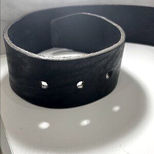 Chasin’ Denim (85) Wide Black Distressed Leather Belt with Square Metal Buckle