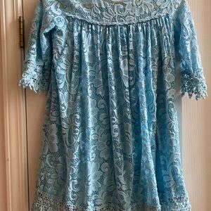 Beautiful blue crochet lace dress with stretchy knit lining Chasing Fireflies Size 10/12 Smoke free home