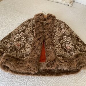 Beautiful jacket from Chasing Unicorns. Beige tapestry with some tiny bits of pumpkin and sage green color, faux fur with pockets. Truly magnificent piece. I can hardly let it go. I do live in Florida though.Very warm jacket, need some cold weather. NWOT. Crosslisted on other sites too.