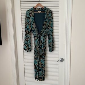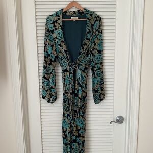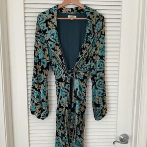 Limited edition long velvet duster from CU. Stunning on! Wear open or belted. Vibrant turquoise blue design. Like new condition. One size.