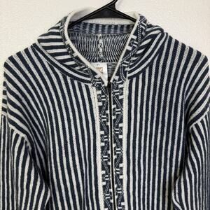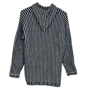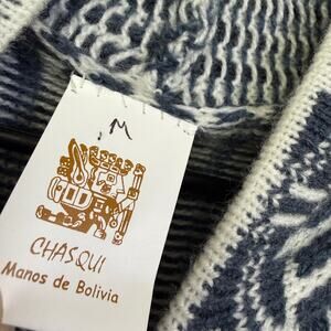 Chasqui Alpaca Sweater Womens Medium Blue Hoodie Knit Striped Full Zip Bolivia