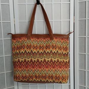 Chateau Southwest Zip-Top Cotton Tote Orange/Yellow 17.5x13.5