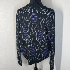 Chateau XXL Acrylic Sweater Made In Korea Black Purple Abstract Pattern
