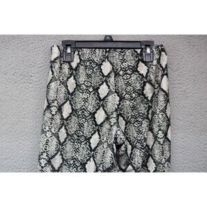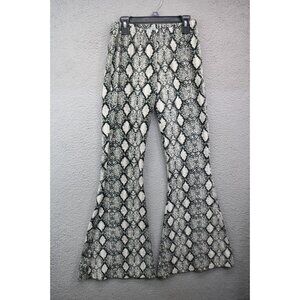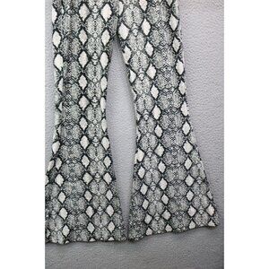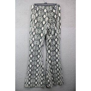 This is a pair of Chatoyant Snakeprint Bell Bottom Pants that is a size Small. They are 95% Polyester and 5% Spandex. They have a 26" Waist and the Inseam is 32.5". They are very soft and in great condition.