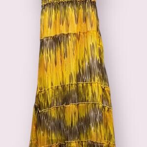 Chaudry K Women's Yellow & Brown Fully lined Midi Dress Size Medium