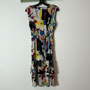 Chaudry KC Anthro multi color art to wear print tier ruffle skirt midi dress new