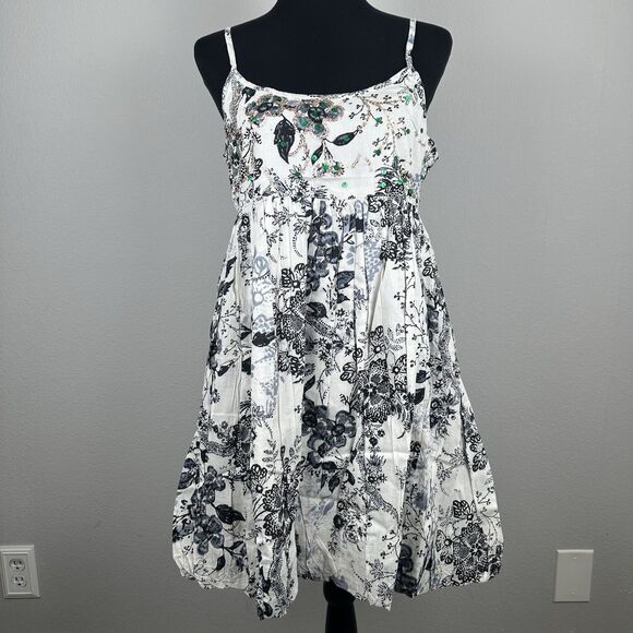 Chaudry KC Babydoll Mini Dress Size Small Sequin Pleated Bubble Hem Cottage Boho