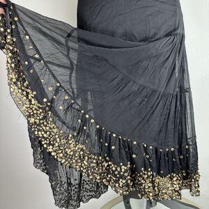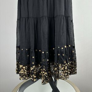 Chaudry KC Maxi Skirt Women XS Black Gold Sequin Boho Festival Gypsy Western NEW