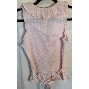 Chaudry KC NWT Deadstock Pink Eyelet Ruffle Blouse Top Women's Small Tie Back