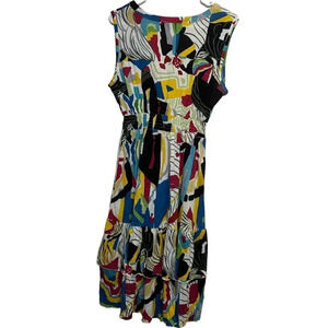 Chaudry KC NWT’s boho sleeveless, colorful bold print midi dress. Size L