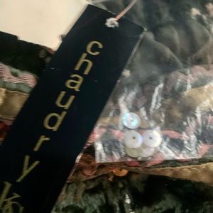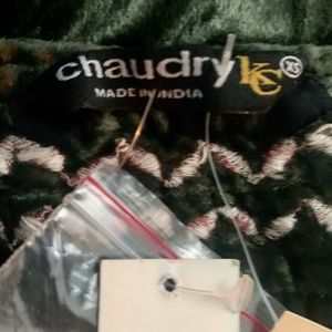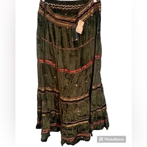 Chaudry KC Y2K Green Velvet Embellished Boho Maxi Skirt NWT Size XS
