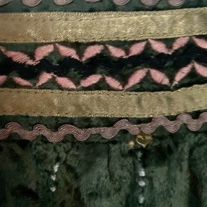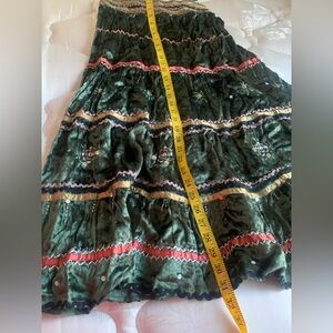 Beautiful green velvet embroidered and embellished maxi skirt. Side zipper. From Y2K. I’m happy to answer any questions or provide measurements at your request.