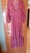 Stunning, flowy, lightweight maxi dress by Chaudry. Deep V neck, elastic at wrists and waistline, tassled pull strings, ruffle skirt. Excellent condition! Size Large. Approx 55in front length (60in in back), sleeve from neckline 27in, 19in bust. Red, pink, dark grey