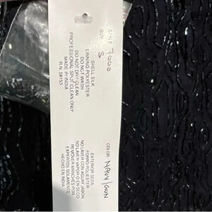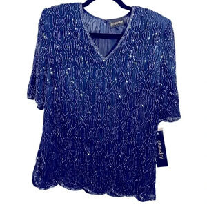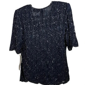 Stunning 100% silk beaded navy blouse with scallop trim from Chaudry. Excellent for your holiday, special event, wedding, evening out, work event and more! Would also be fabulous with denim.