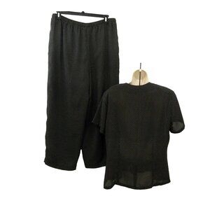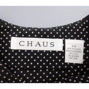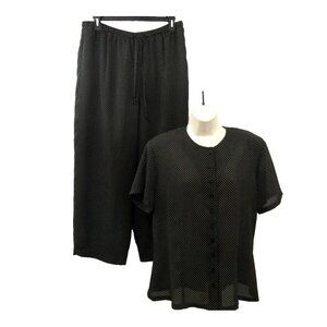 Chaus 2-Piece Pantsuit 14 Black Polka Dot Button Front Short Sleeve Top Pockets