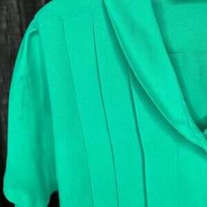 Chaus 80’s Kelly green pleated button front blouse Size 8