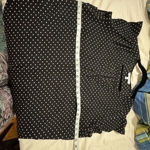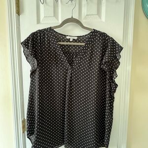 This elegant blouse by Chaus features a classic black and white color scheme with charming ruffled sleeves. The relaxed fit and flowy fabric make it a versatile addition to any wardrobe, perfect for both casual and dressy occasions.
