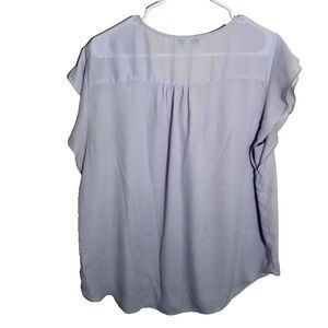 Chaus Blouse Women's XL Purple V-Neck Short Sleeve Ruffle Career Sheer Top