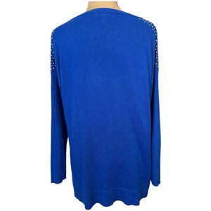 Chaus Blue Boat Neck Studded Shoulder Sweater, Size XL