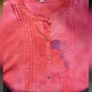 Woman's extra large hot pink /purple light tie dye print crew neck button up blouse