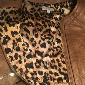 Chaus Brown Leather Jacket w/ Animal print detail