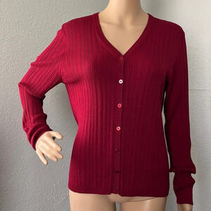 Chaus Button Down Cardigan Silk Women's Red Size M