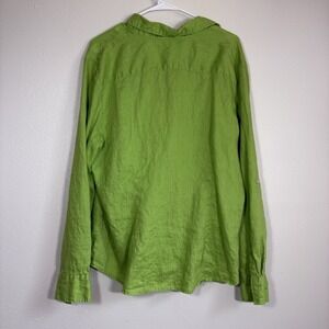 Chaus Button Up Long Sleeve Sz 16 Green Lightweight Lagenlook Resort 100% Linen