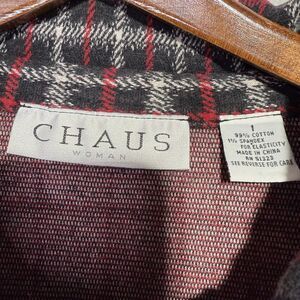 This cozy Chaus Woman button-up shirt in size 1X features a classic red and black plaid pattern. Perfect for casual outings or layering in cooler weather. Made from a soft and breathable fabric blend, it offers both comfort and style.